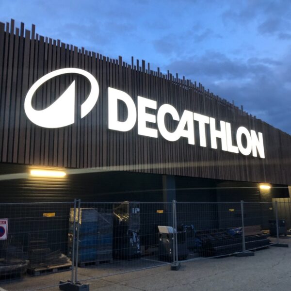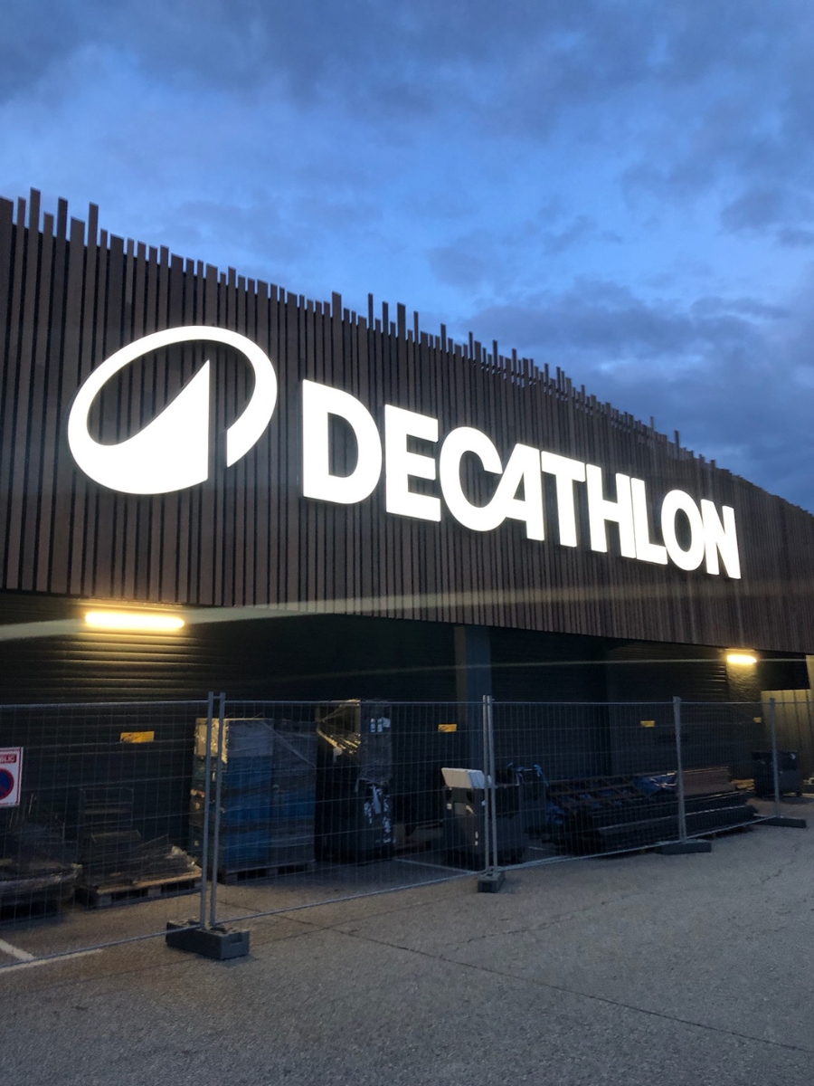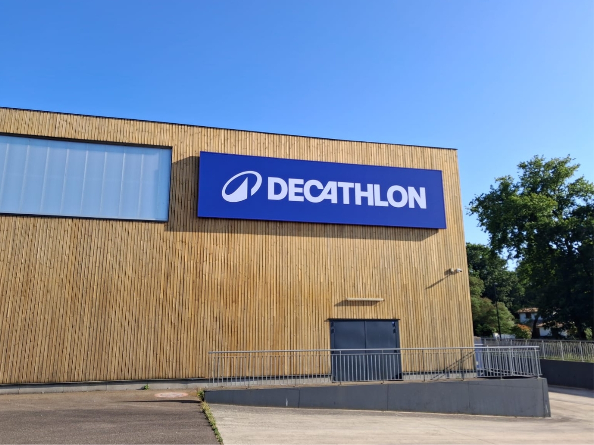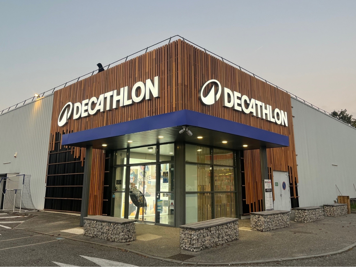 Depuis 2020, nous accompagnons Décathlon dans la mise en œuvre de cette nouvelle charte, avec déjà plus de 30 magasins transformés. Nos équipes assurent la conception, la fabrication et l’installation des différents éléments de communication extérieure.