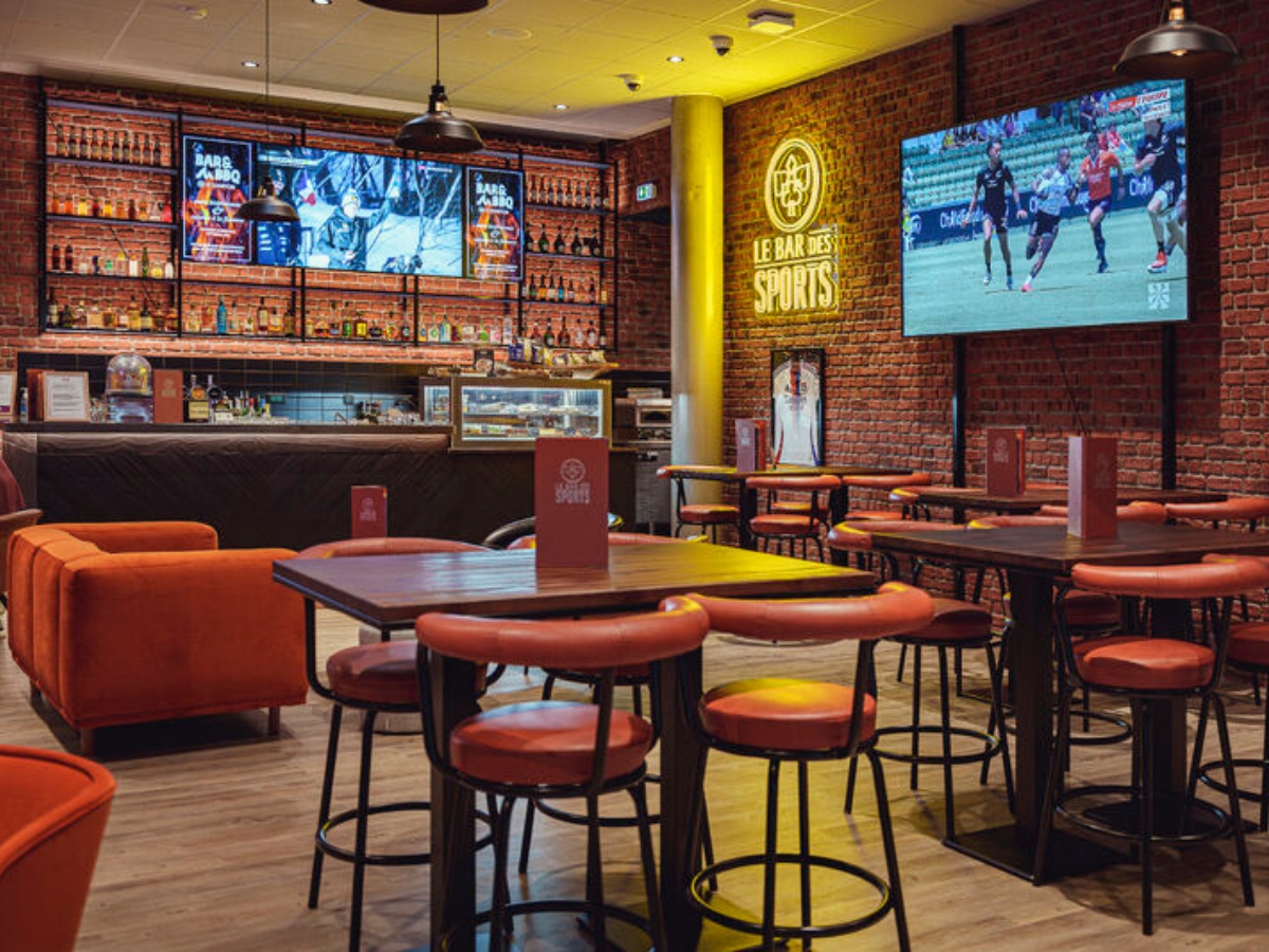 - De nombreuses enseignes lumineuses extérieures, intégrées à la façade du bâtiment moderne
